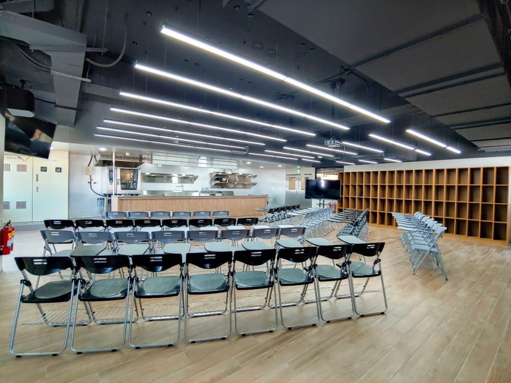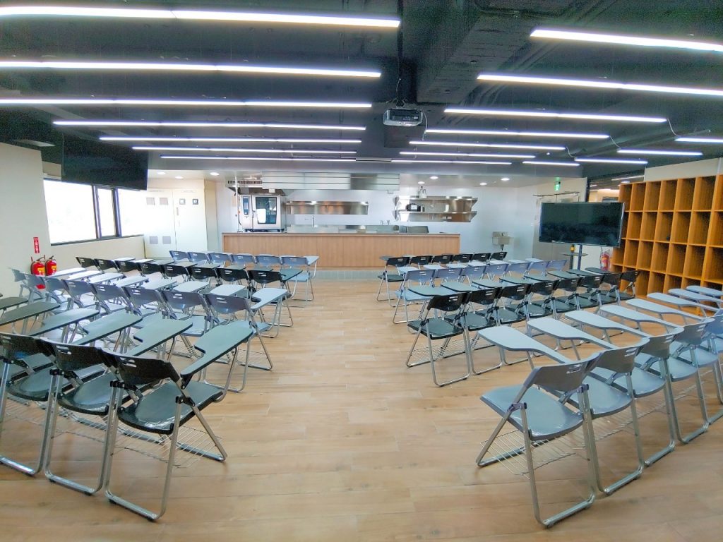 教學特色:教室為專業廚藝示範教學設計,涵蓋中式、日式及東南亞等多元料理文化。學生在學習精湛烹飪技術的同時,也能深入理解不同飲食文化的特色。空間採實務導向教學方式,搭配完善的電視/影像轉播系統,確保每位學生都能清楚觀摩老師示範細節。